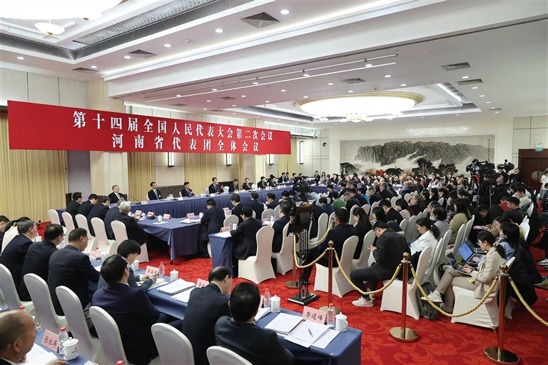 ?3月7日下午,十四屆全國人大二次會議河南代表團舉行全體會議,并向境內外媒體開放。本報記者 董亮 杜小偉 攝